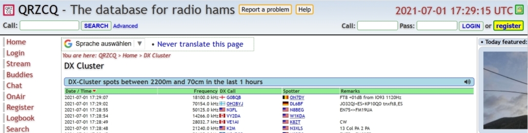 – welcher Funkamateur | zu welcher Zeit | welches Funkrufzeichen | auf welcher Frequenz – (QRV – betriebsbereit) ist | bzw. gehört hat.